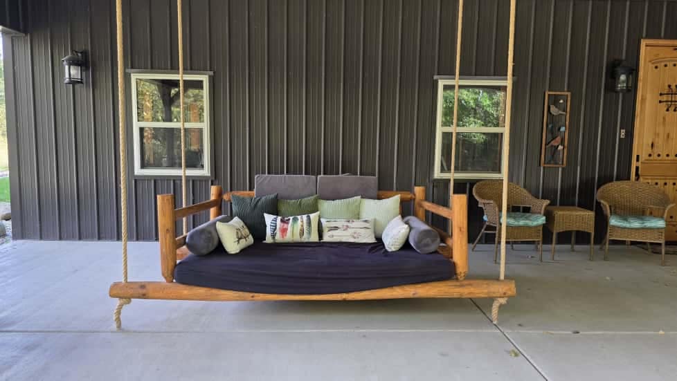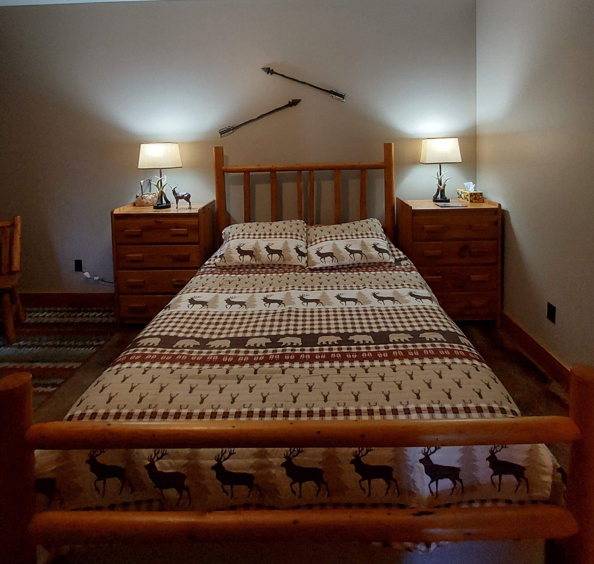At the end of the curvy sidewalk, the large front porch welcomes guests who can sit and relax while listening to the quaking aspen trees. Off of the kitchen is the back porch which has a vaulted knotty pine ceiling. This is a great place to enjoy your breakfast while watching the sun rise.