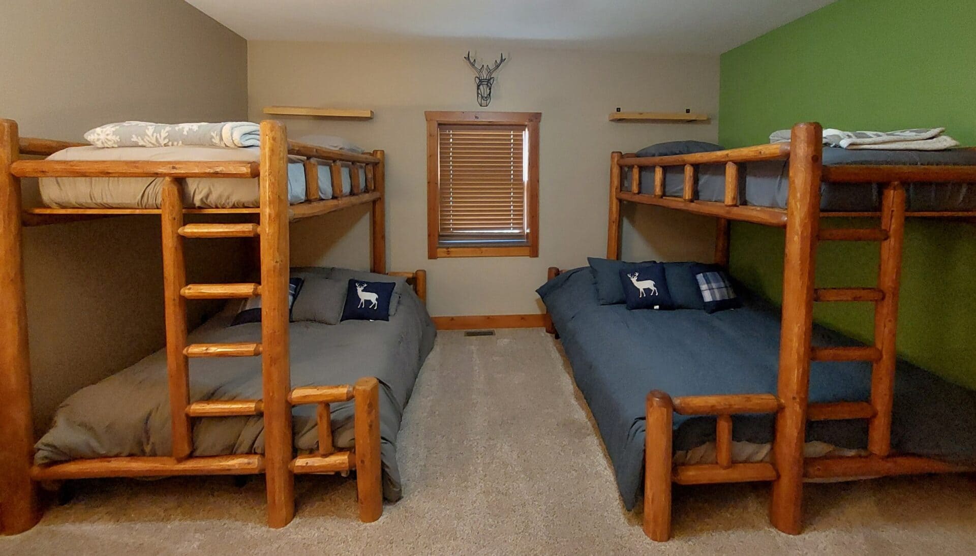 The Great Room and the Rec Room each have their own carpeted loft with Douglas fir timber balcony railings. Each has sofa-beds that can sleep more guests and where guests can relax, read a book, or play board games. The Rec Room loft is a great place to watch other guests shoot some hoops also.